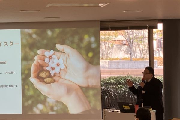 株式会社ハートリーのご講演では,アーモンドマイスター事業部ブランドマネージャー 大塚様,アーモンドマイスター事業部関西エリア販売担当 伊藤様より「アーモンドスイーツ専門店 アーモンドマイスターのご紹介と将来の展望について」と題してご講演いただきました.講演では,創業者の思いに関する動画の視聴後,「商品の良さをどう伝えていくか」といったマーケティングの課題をご紹介くださいました.学生たちにとって,小売業×データサイエンスのなかで,営業職に必要なデータサイエンスについて考えるきっかけをいただきました.