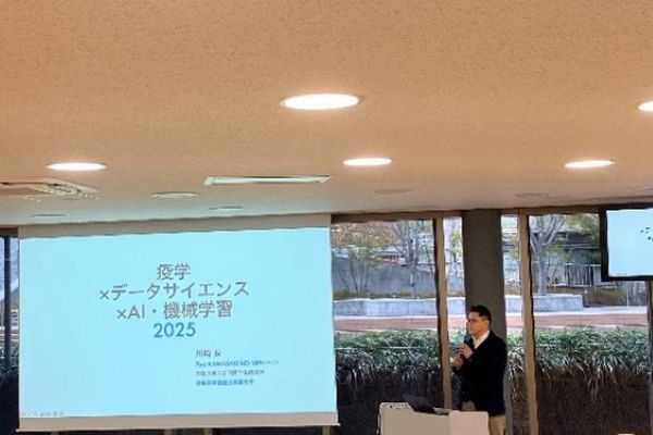 データサイエンス学部の専門発展科目「疫学統計と生活」の12月8日の講義では,大阪大学大学院医学研究科・社会医学講座・公衆衛生学の川崎良教授をお招きして,「疫学×データサイエンス×AI・機械学習」というテーマでご講演が行われました.ご講演では,疫学の基本的なお話から,疫学研究へのアプローチの方法,疾患のリスク評価方法,因果推論のお話をいただきました.また,機械学習・AI解析へ応用した事例として,早産児の失明の予測モデルでのリスクを早期発見するお話をいただき,現在2回生が履修している専門発展科目「AI・機械学習Ⅰ」の内容とも関連した興味深いお話を聞くことができました.その他,糖尿病網膜症に関連する様々な疫学研究やAI画像診断支援など,最新の研究のお話をいただきました.学生にとって,普段講義で学んでいる内容が最先端の研究にも使用されていることを知り,疫学・医療の分野におけるデータサイエンスの役割への理解を深めるよい機会となりました.