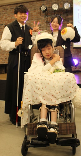 「重度心身障害者の思いをカタチに」を目的とし、重度心身障害者の方をモデルに開催しており、今年で3回目の参加となります。本年は、準備の段階から運営にも協力し、ファッションショーで着用する衣装の元となる古着の回収から衣装制作、会場設営なども行いました。