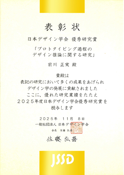 【生活造形学科】家政学部生活造形学科の前川正実教授が、2025年度日本デザイン学会 優秀研究賞を受賞しました。