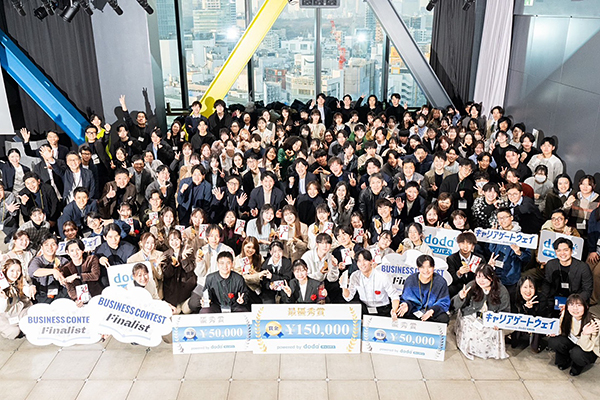 「dodaキャンパス」が主催するこのグランプリファイナルには、過去最多企画数となる104企画、62大学から合計135人の大学生がファイナリストとして参加。そしてキャリア教育パートナー企業15社の審査委員を前に、個人やチームで出場した学生が、着目した社会課題やその理由、課題分析、課題解決のためのアプリ展開案、アプリユーザー調査報告、アプリ期待成果、ビジネスモデル等を発表しました。その結果、8企画14人がグランプリファイナリストとなり、各賞が授与されています。