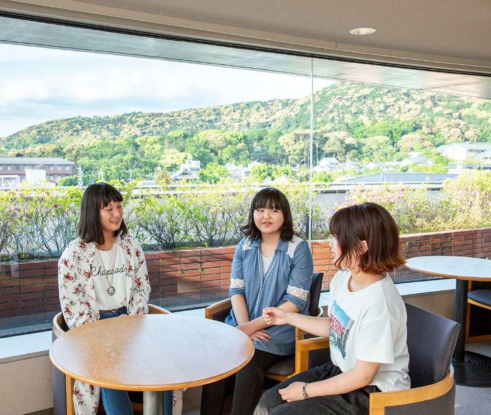 京女の図書館の中にある『Soraカフェ』(※)によくいます。課題をしたり、気分転換したりしています。周りも同じように過ごしている人が多いので、一人でいても全然平気です(笑)。