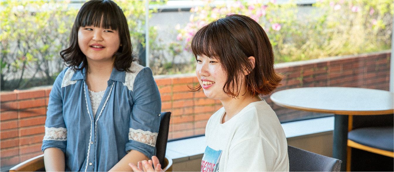 私は性格が明るくなったというか、京女に入ってから前より笑って話しているなと思います。気の合う友達も増えて、楽しい大学生活を過ごしています。