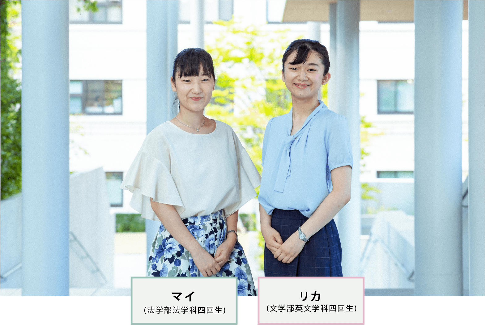 就職活動にもつながる話ですが、大学は四年間通う場所だから、自分の目で実際に大学の様子を見に行った方がいいと思うし、受験するときになぜこの大学を受けているのかなって考えながら受けた方がいいと思います。実際に足を運んでみたからこそ分かることってあると思うし、逆にパンフレットやwebサイトに書いてあることだけじゃその大学のすべては分からない。自分で足を運んでということが高校生の皆さんに伝えたいことですね。
