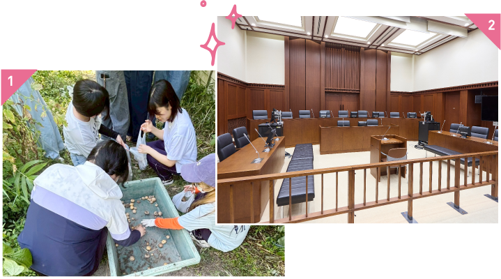 ②1回生のときに履修した『憲法』が印象に残っています。憲法学の基礎を学ぶ内容で、模擬法廷で講義を受けました。
