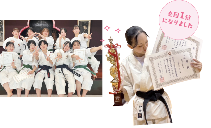 少林寺拳法部の練習に参加します。昨年の全日本学生大会で、単独有段の4位をとりました。女性では全国1位です!
