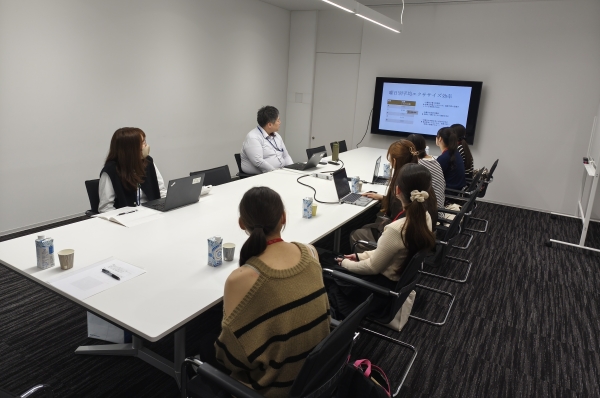 張ゼミの学生はオムロン ヘルスケア株式会社を訪問しました.学生らは事前課題として,同社から身体活動量計をお借りし,学生全員が携帯し自身に関するデータの収集を行いました.収集されたデータをもとに「身体を動かすことの見える化:活動量計による身体活動量測定の統計分析」というテーマで学生どうしでのディスカッションを行い,当日に向けたプレゼン資料の準備を進めました.現場見学当日は,オムロン ヘルスケア株式会社本社の会議室にて,ご担当の方に向けてデータ分析の結果などに関して作成した資料を基に発表を行い,発表後には意見交換が行われました.また,同社オフィスの見学も行わせていただき,学生らも実際の機器を活用したデータ収集と分析という貴重な体験を行うことができました.