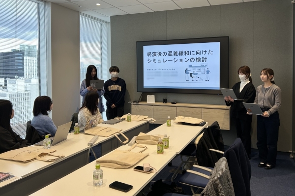 足立ゼミの学生ダッソー・システムズ株式会社を訪問しました.訪問した学生らは,事前学習として,「ダッソー・システムズ社の製品を使って,困りごと・課題を改善し,効果を得るためのアイデア」 をテーマに2グループに分かれてブレインストーミングを活用したディスカッションを行いました.各グループで出たアイデアについてプレゼン資料にまとめ,訪問日当日にダッソー・システムズ株式会社のご担当の方に向けた発表を行いました.学生らは,「混雑緩和に向けたシミュレーションの検討」や「イベントでの在庫設定の最適化」といった内容でプレゼンを行い,ご担当の方からも発表内容に関して建設的なコメントをいただくことができました.発表後にはオフィス見学も行われ,学生らにとっても実社会に活かせるアイデア創出を行う貴重な機会を提供していただきました.