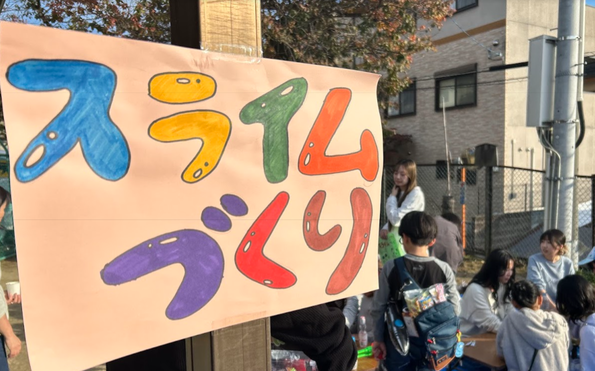 11月8日(土)、京都女子大学のすぐ近くにある今熊野児童館のお祭に、仲井ゼミ、有志の学生(発達教育学部・心理共生学部・軽音楽部の学生)が参加しました。地域の子ども達・保護者・関係者の方々と共にお祭を盛り上げられるよう、スライムづくりを紹介しました。また、京女生・教員の有志バンドを結成して、子どもや大人が知っているような曲を選び、一緒に楽しめるように披露しました。お祭では、児童館で取り組んでいる竹馬&鳴子おどりの発表もあり、子ども達の頑張っている姿を見ることができました。これからも地域社会の一員として、関わっていくことができれば幸いです。