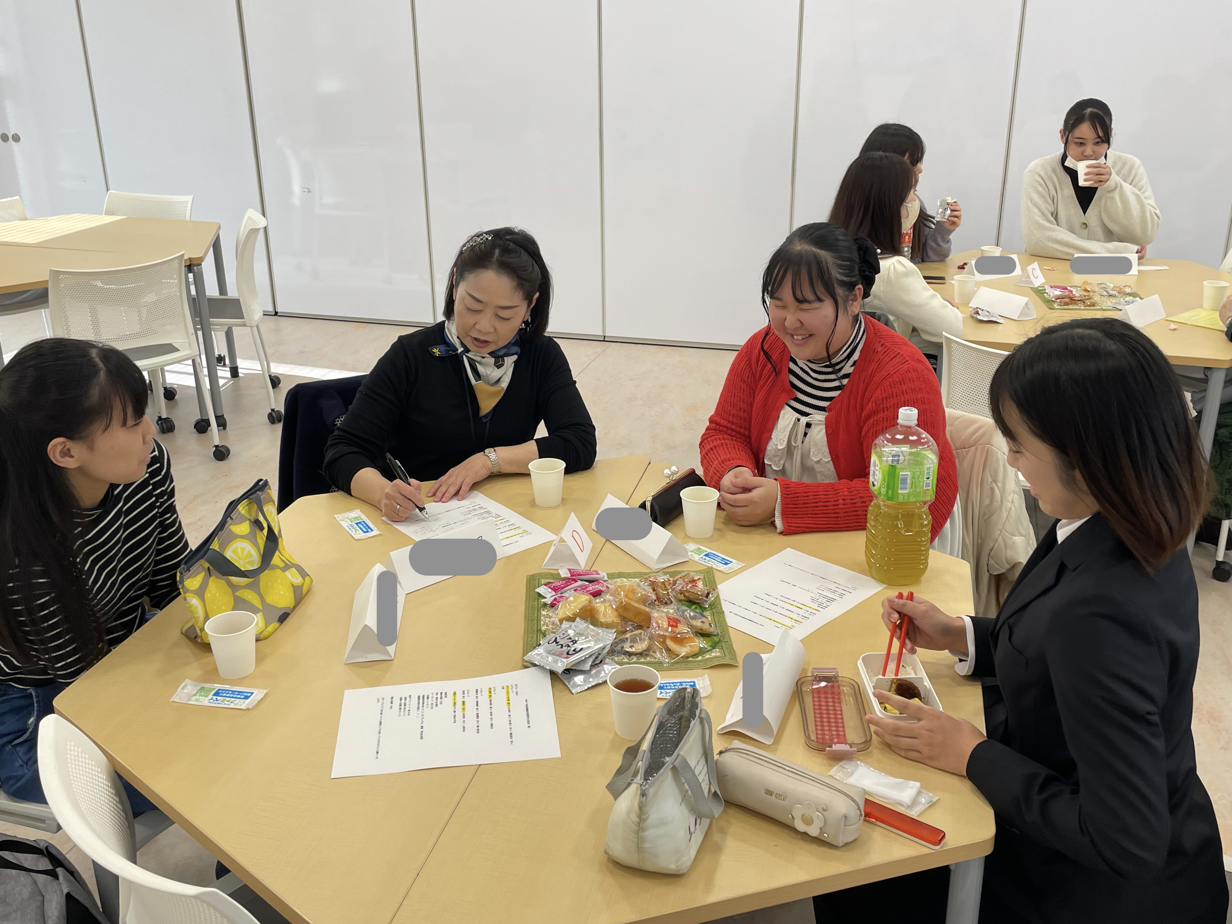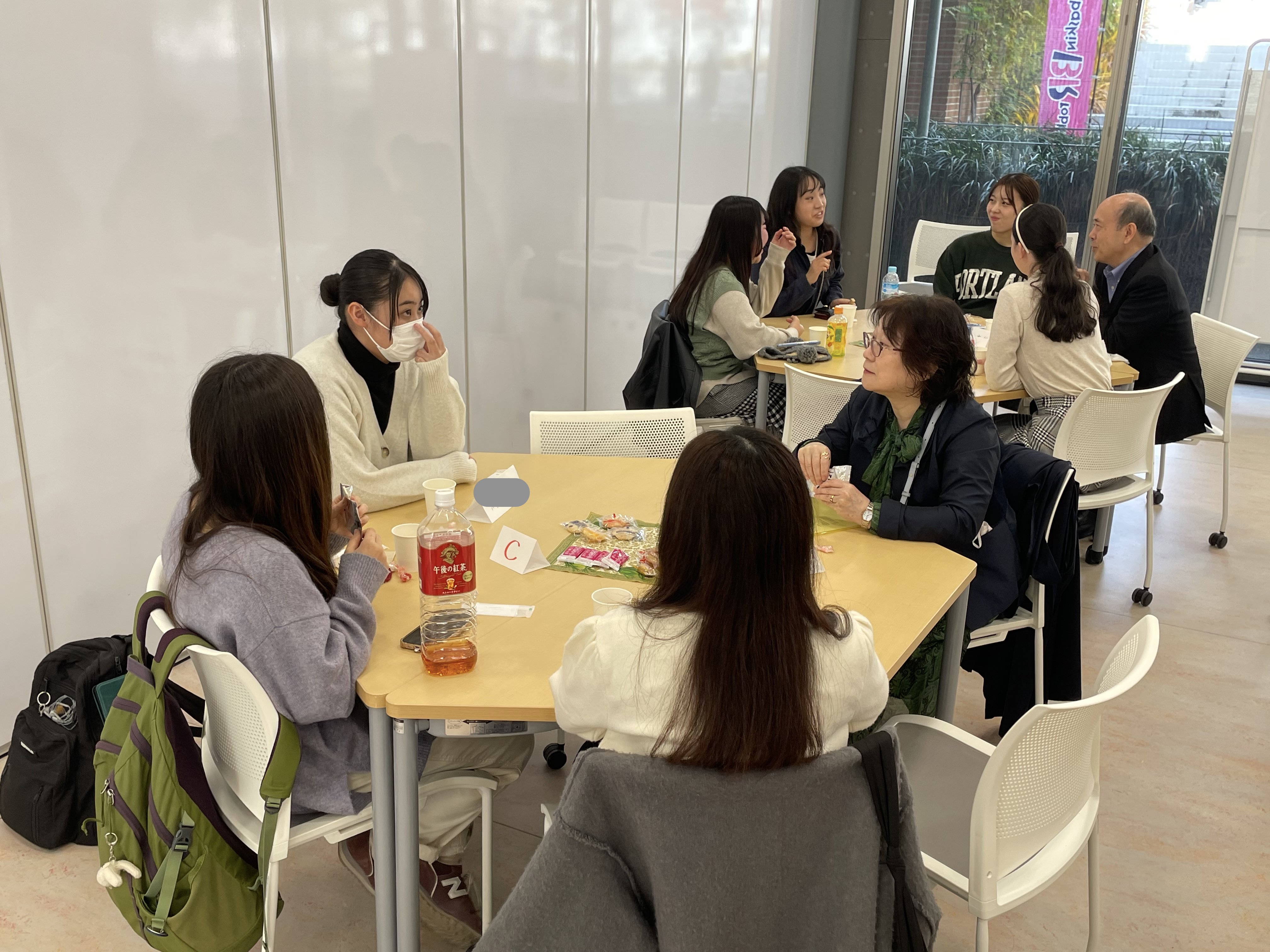 11月27日(木)に令和7年度成績優秀賞奨学生交流会を行いました。発達教育学部は改組により、1・2回生と3・4回生の学部内の所属はそれぞれ異なりますが、学科・専攻、また学年を越えて2回生から4回生まで13名の学生と、4名の教員が参加し、活発な意見交換が行われました。まず少人数に分かれたテーブルごとに、今頑張っていること、発達教育学部の良いところなどを語り合い、次は全員でのフリートークです。本学部の多くの学生が体験する教育実習や採用試験、また勉強方法などについて後輩から先輩に質問を投げかけたところ、4回生から多くの有益なアドバイスがあり、短いながらも充実した交流の時間となりました。