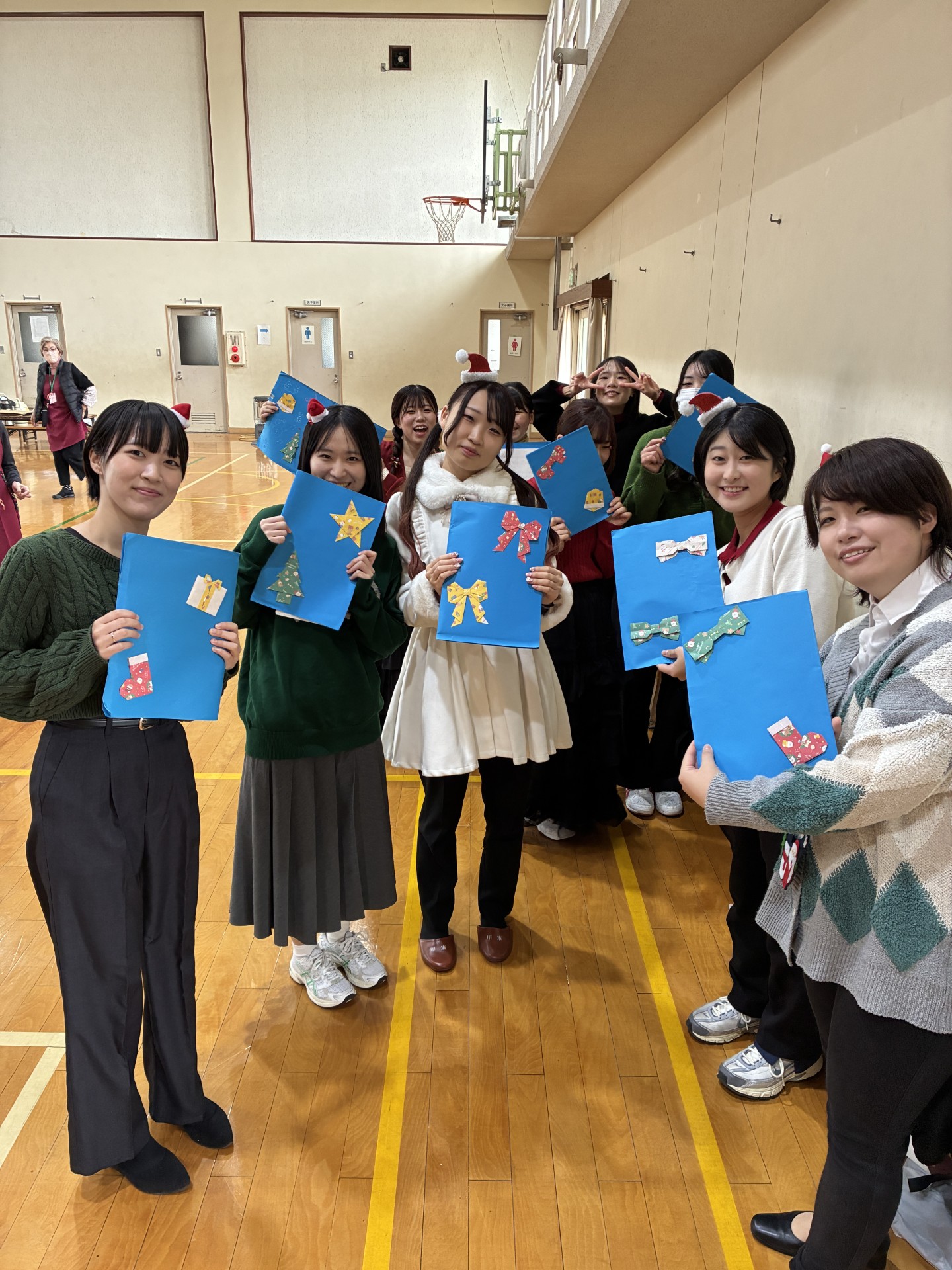東山総合支援学校で行われている「すこやか学級」にて、今年最後となる演奏を行いました。今回は、4回生と2回生が協働し、企画・準備から当日の演奏までを担い、本番に臨みました。飾りつけには、2回生が廃材などで手作りした作品を使いました。