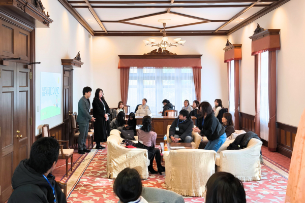 交流会では、自分と年齢の近い学生の方々と自分の親くらいの年齢のオモニ会の方々とのディスカッションを通して、多くの発見がありました。市川ゼミの本を贈る活動についてのディスカッションでは、おりがみ付きの本や、読み聞かせなどの気軽に本を取れる環境づくりなど、私には思いつかなかったアイデアを沢山知ることができた良い時間でした。来年度の活動に活かしていきたいと考えています。
