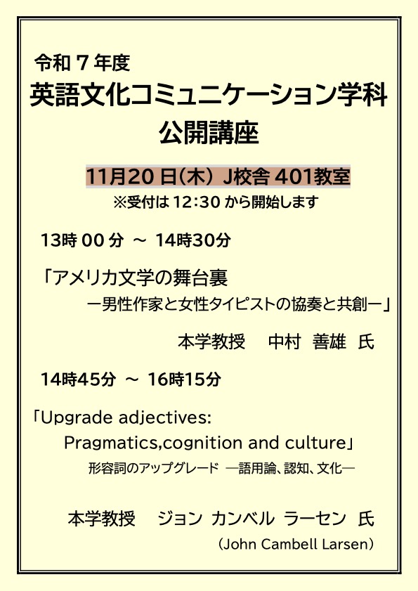 英語文化コミュニケーション学科公開講座のご案内(11月20日開催)