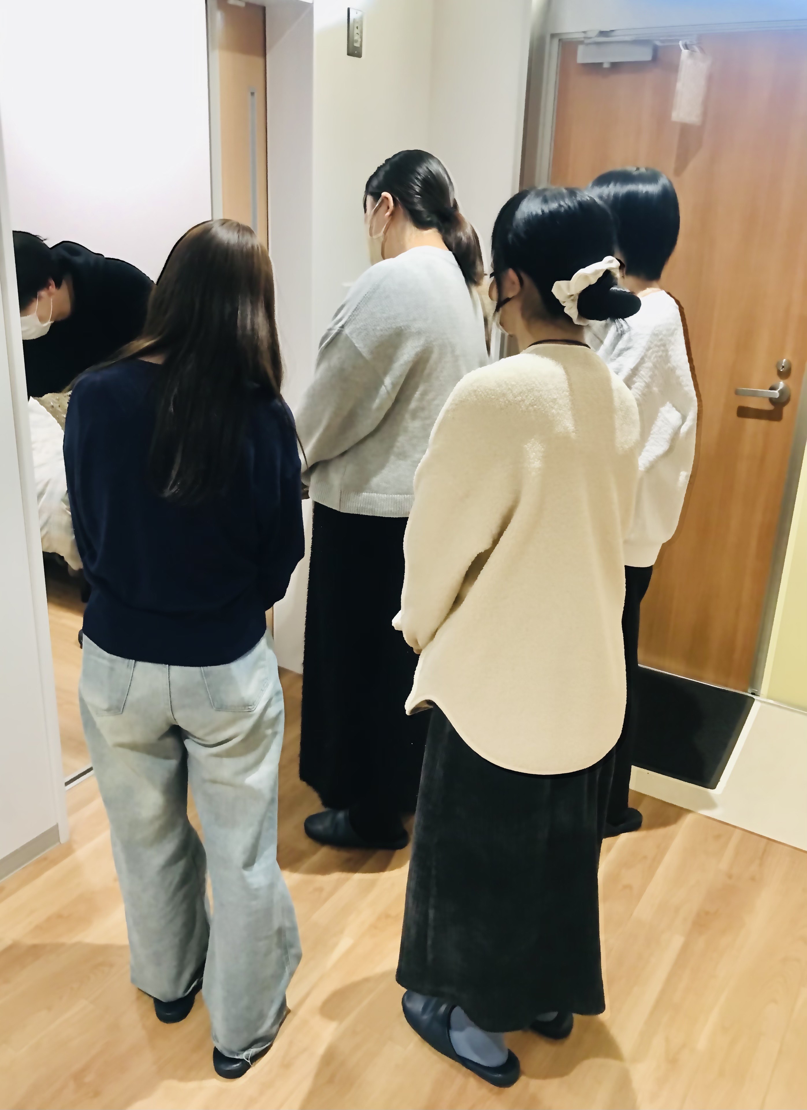 株式会社ワコールと連携し学生が小学生に特別授業を行う 学生の取り組み 養護教諭をめざす3回生7名が、株式会社ワコールが行うからだと下着の出前教室「ツボミスクール」の連携協力のもと、「成長期のからだと下着の特別授業」を、 2025年1月9日(木)10日(金)、京都市立七条第三小学校にて実施。3年生には、絵本教材「おしえて!くもくん」(東山書房)を使って、“プライベートゾーン”についての授業を学生たちが企画し、小学生たちと下着の役割についてみんなで考えながら理解を深めてもらいました。5年生には、「下着の種類と役割機能」について、思春期に起こるからだの変化とその個人差について理解を深め、下着の役割を学んでもらいました。特殊な薬品で汗や垢を検出した肌着を見せ洋服の汚れを防ぐ肌着の役割を伝え、テキストマイニングを活用した成長期のからだの変化の振り返りなど、学生による工夫を凝らした授業を行いました。