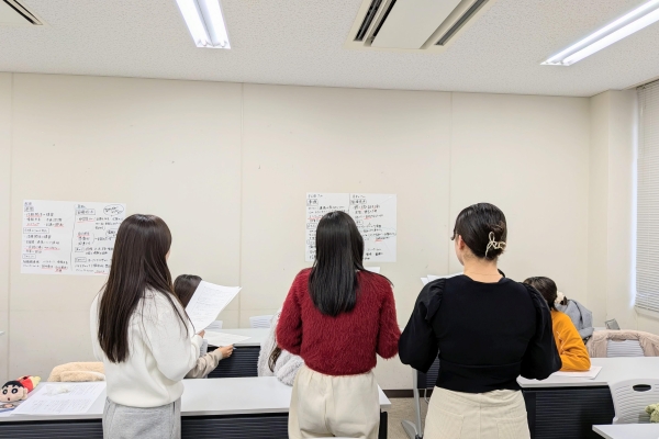 心理共生学科では、相談業務や地域支援など、生活課題や社会課題の解決・調整にかかわる社会福祉士国家資格取得を目指している学生もいます。社会福祉士のカリキュラムは講義・演習・実習から構成されており、今回は実習をふり返るための「ソーシャルワーク演習Ⅴ」(3回生開講)を紹介します。 ソーシャルワーク演習Ⅴでは、実習の中で十分な答えを見出せなかった事例や、他の学生からの意見も求めたい事例などを各学生から提供してもらい、課題解決に向けて話し合われたり、言葉のとらえ方について議論するなど、「講義」で学んだ知識について「実習」という実践を通して考えてきたことを「演習」でさらに深めたり広げる作業をしています。たとえば、「相談者の抱える「寂しさ」などの負の感情に寄り添う方法として何が考えられるか」「自由と安全の両立についてどのように考えるか」「その人らしさを尊重した支援を実現するためには何が必要か」など社会福祉士というプロフェッショナルな立場で考え、発表する学生たちの姿は社会福祉士としての姿勢そのものになりつつあり、頼もしさを覚えています。そして学生たちはソーシャルワーク演習Ⅴで培った知識や技術、倫理、視点を用いて、最後の実習に挑むことになっています。このように、経験してきたことをそのままにせず、ふり返る場面を通して、学生たちは目指すべき専門職像に向けて着実に一歩ずつ歩みを進めています。 *2025年度は心理共生学科3回生がいないため、養護・福祉教育学専攻3回生の内容を紹介していますことをご了承ください。