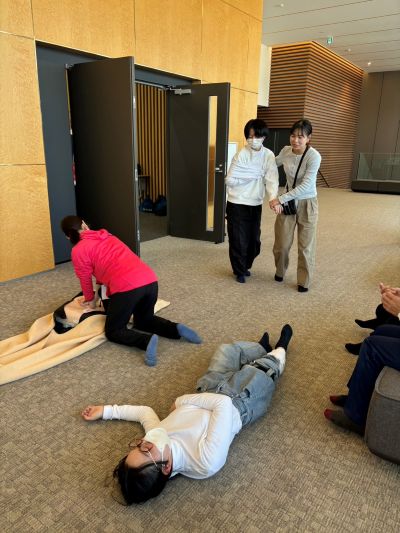 ・包帯法や心肺蘇生法は大学の授業でも経験がありましたが、今回の講習会ではより専門的かつ実践的に学ぶことができました。また、災害時を想定した実技訓練を通して、知識だけでなく冷静に判断し行動する力の重要性も学びました。養護教諭を目指す私にとって、大変有意義な講習会となりました。