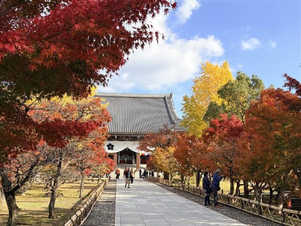 古都、京都は東山。京都女子大学の近くにある智積院。桔梗の印のある看板の、その先にある。ただ周りを回るだけ、外から見るだけでも、静かで心休まる雰囲気が伝わってくる。朝に入ることをおすすめする。紅葉が赤、黄色、茶色、緑などさまざまに見られる。無料で入れるところだけでも、とても良いものである。静かで落ち着く雰囲気なので、ガヤガヤした騒がしいところが苦手な人にはおすすめである。