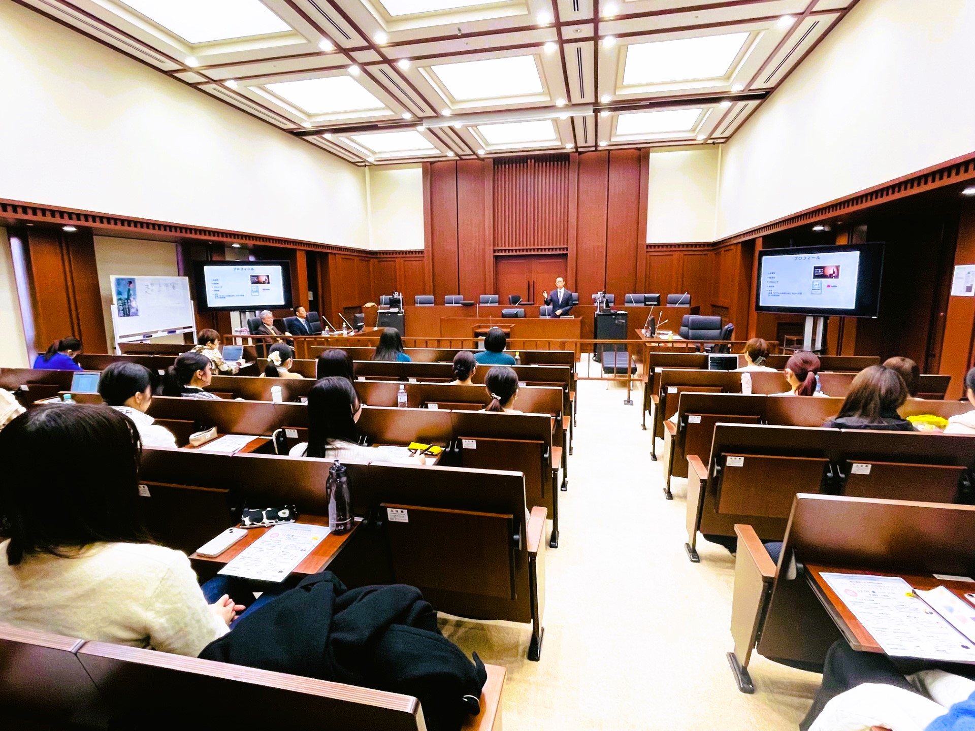 1人目の講師、起業家・社長の山口俊晴氏には、「京都女子大学とのコラボレーションの取り組み」と題したご講演をいただきました。山口様は、株式会社未来における新製品開発のポイントややり方、現代社会学部の江ゼミとのコラボの詳細について話してくださいました。