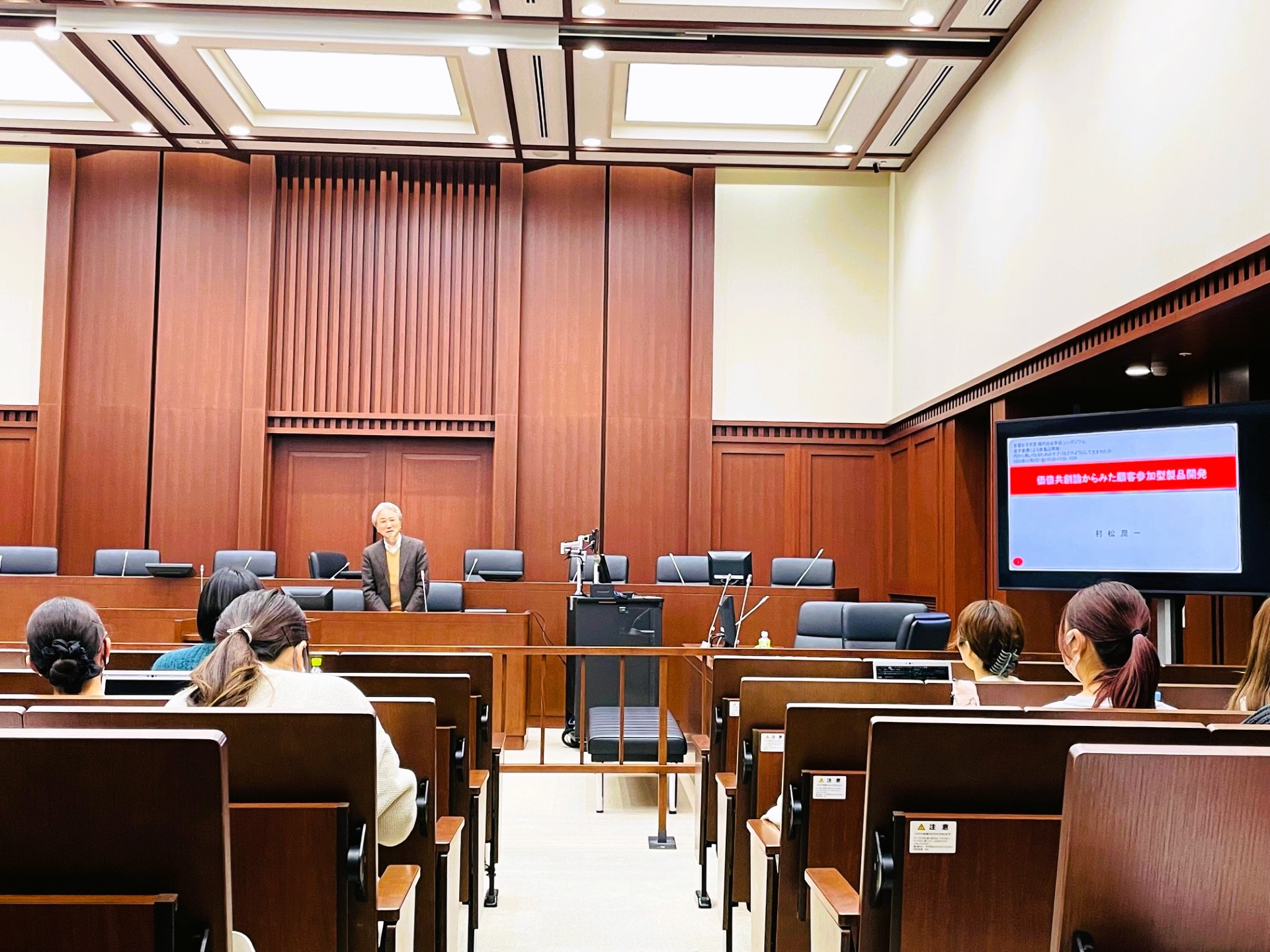 現代社会学部の江向華准教授の企画で、2023年12月8日(金)に、全学の学生を対象に、産学連携による新製品開発に関するシンポジウムを開催しました。企業の社長や、コンサルティング会社の社長、マーケティングを専門とする研究者をお招きして、理論と実践から新製品開発についてお話しいただき、パネルディスカッションも行いました。