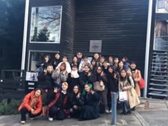 当日は本学からは、学生リーダー4名と手嶋昭子ジェンダー教育研究所長、戸田香ジェンダー教育研究所助教、一力知一客員教授が参加し、まずフェリス女学院大学緑園キャンパスにあるGemに伺いました。Gemでは、平日の開室時間内にフェリス女学院大学の学生が誰でも立ち寄ることができ、書籍やDVD資料の閲覧や貸出等も行っているそうで、参加した学生リーダーからはその資料の豊富さに驚きの声が挙がりました。他にも、ワークショップやジェンダーのことについて語り合う場の開催や、学外でのイベントチラシも用意されており、とても魅力的なセンターでした。私たち学生リーダーも、ジェンダーに関心のあるより多くの京女生と共に学び、語り合うことのできるスペースを本学内に常設していきたいと考えているため、学生が集う環境の作り方についても刺激を受けました。