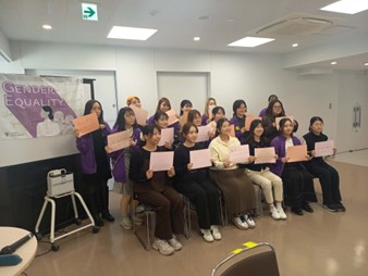 オープニングの後は、各大学の活動報告を行い、3大学それぞれが企画したワークショップを行いました。まず、Gemの学生が企画したものとして自分らしさシートを作成しカードを用いた自己紹介ワークを行いました。私たち学生リーダーからは、本学の卒業生にヒアリングを実施し、昨年8月に大阪関西万博「ウーマンズパビリオン」にて成果発表を行った、『私たちが考える女子大学の意義』の資料を用いて、社会で活躍するための女子大学で得られたスキルを再考するワークを行いました。最後に、筑紫女学園大学女性学研究室の研修生の企画として、全国各地でみられるジェンダーのステレオタイプや偏見を挙げ意見交換を行うワークを行いました。3大学の所在地が異なっていて、当日は留学生も参加されたため、国際的な視点から活発な議論となりました。共通の関心をもつ他大学の学生と和やかな雰囲気で活発に議論することができ、有意義な交流の時間となりました。