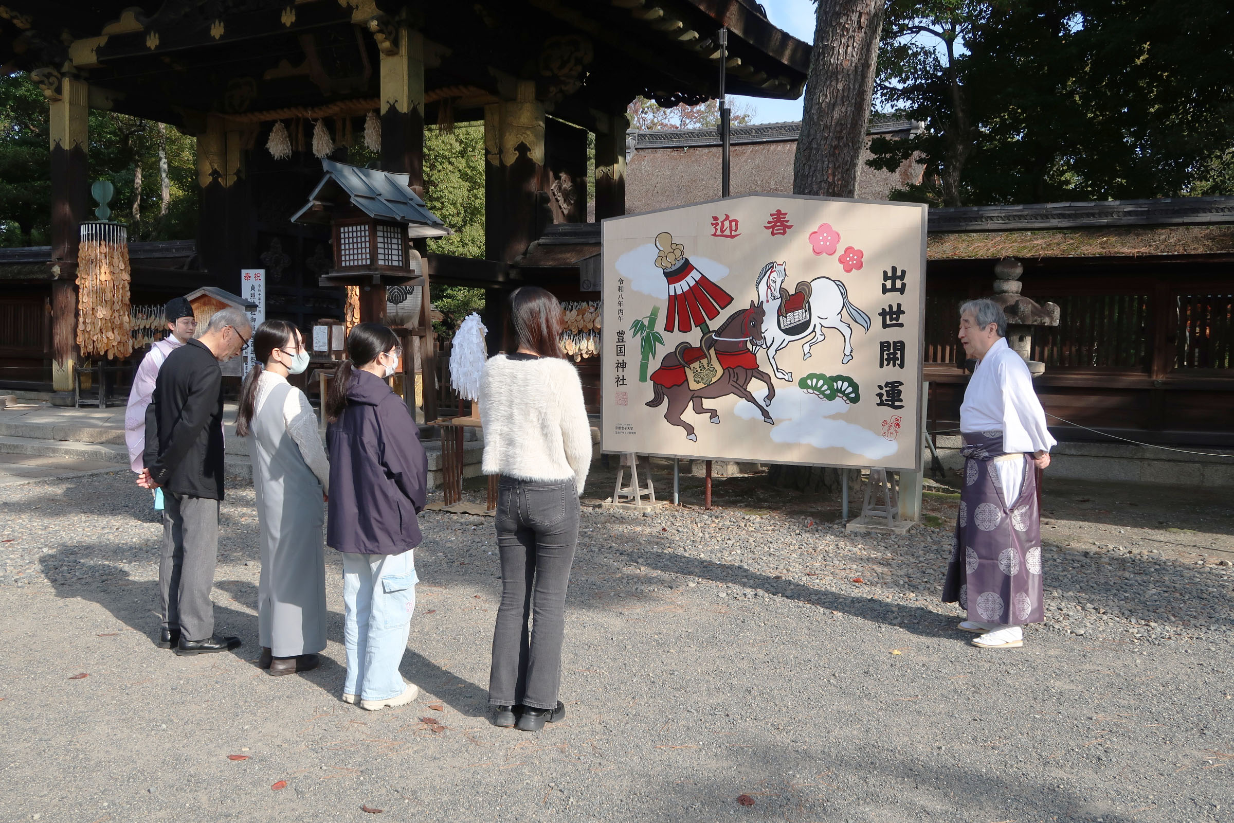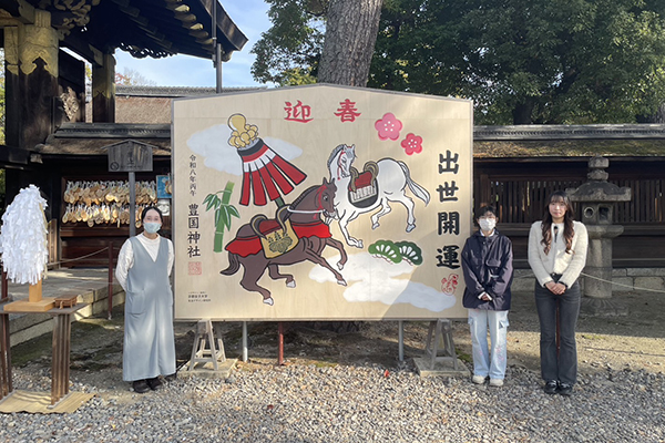 2025年12月1日(月)、本学の近くに位置する豊臣秀吉を祀る豊国神社に、今年も生活デザイン研究所絵馬プロジェクトの学生たちが制作した大型絵馬を奉納しました。
