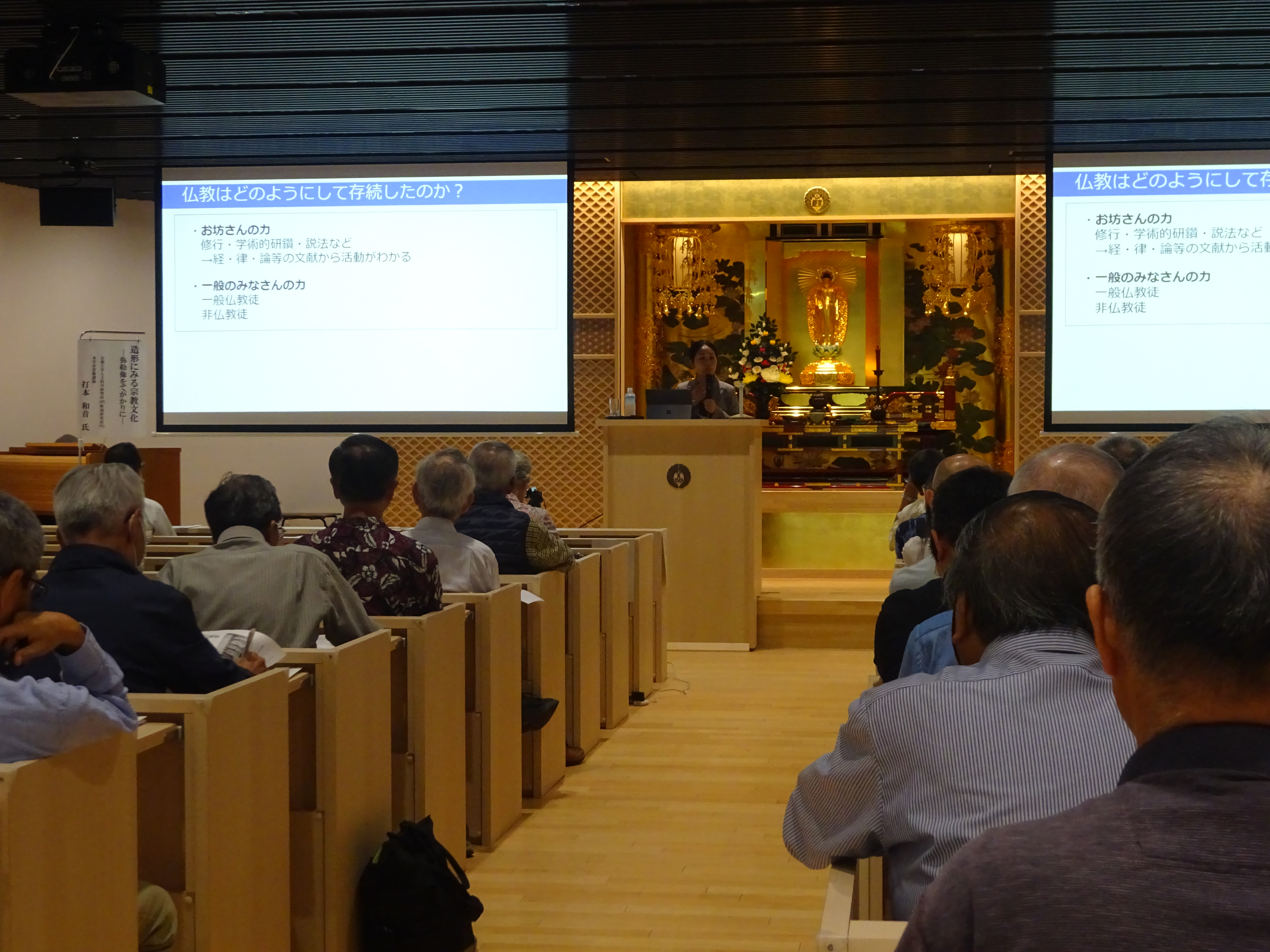 第Ⅰ部では、「造形にみる宗教文化—弥勒像をてがかりに—」という講題で打本先生よりご講演いただき、第Ⅱ部では、「もうひとりのブッダ—マハーヴィーラとジャイナ教の教え—」という講題で堀田先生よりご講演いただきました。