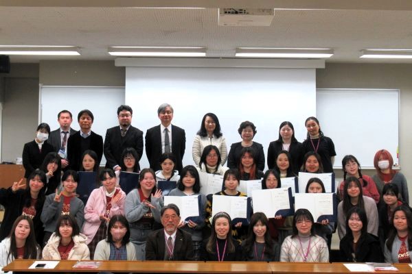 日本語プログラム20名、日本語強化プログラム1名、交換留学8名の留学生が、日本語科目や正規科目等を履修し、修了式を迎えることができました。