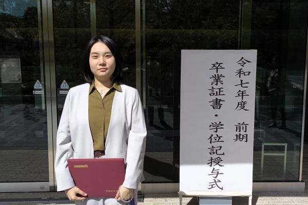 9月30日に行われた令和7年度前期卒業式で発達教育学部心理学科の劉さんが卒業されました。
