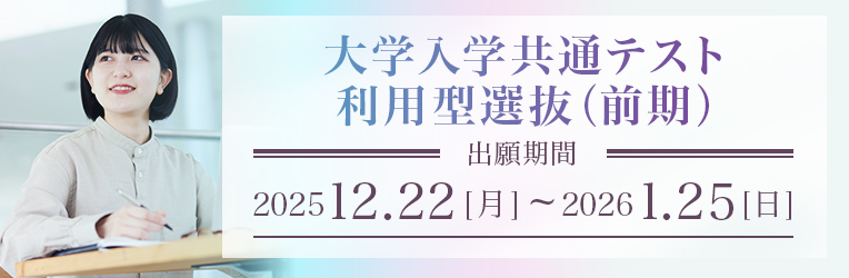 | 後期 | 大学入学共通テストの得点を利用する入試制度です。 学科・領域が指定する3教科の得点を利用して判定します。 |
