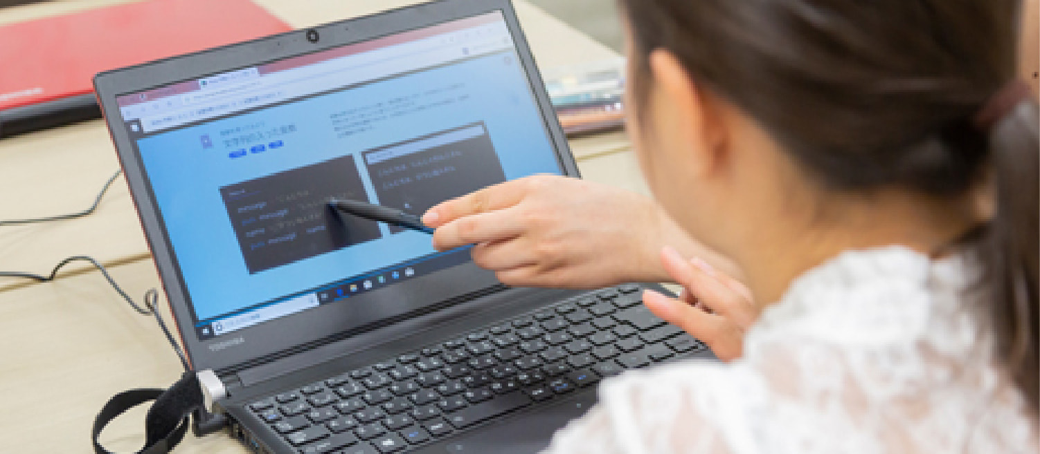「プログラミング体験教室」で教えているときに、高校生がプログラミングを楽しんでいる様子を実際に見られることが一番のやりがいとのこと。今後は、自宅のパソコンでもプログラミングの楽しさを体験してもらえるよう、環境設定の方法やプログラミング課題のプリントを作って配布するなど、活動の幅を広げていくことも視野に入れて取り組んでいます。