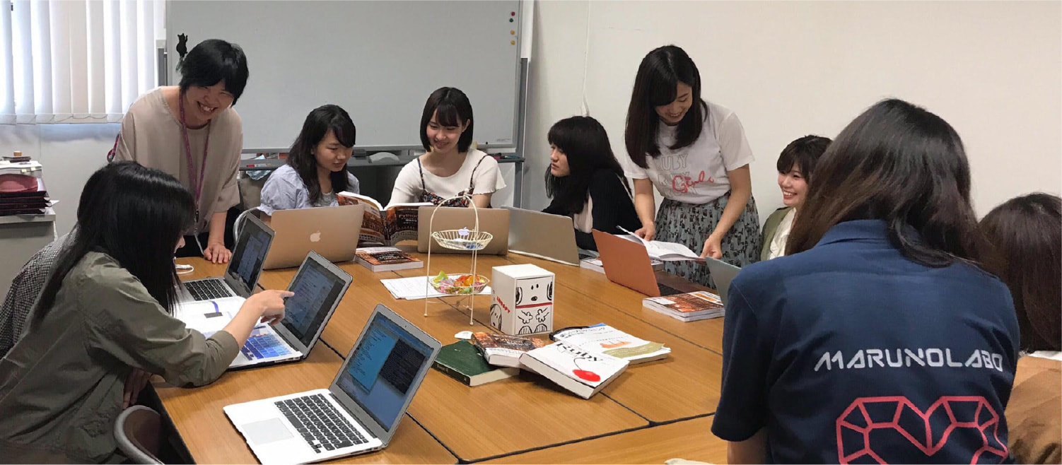 『Ruby Girls』に参加する学生自身、最初のきっかけは、プログラミングに親しみを持ってもらい、将来の進路の選択肢を広げる手助けを行う『Ruby Girls』との出会いでした。そこでプログラミングの楽しさを知り、大学の講義でプログラミングを学びながら、その魅力を伝えていきたいという想いでこの活動をしています。
