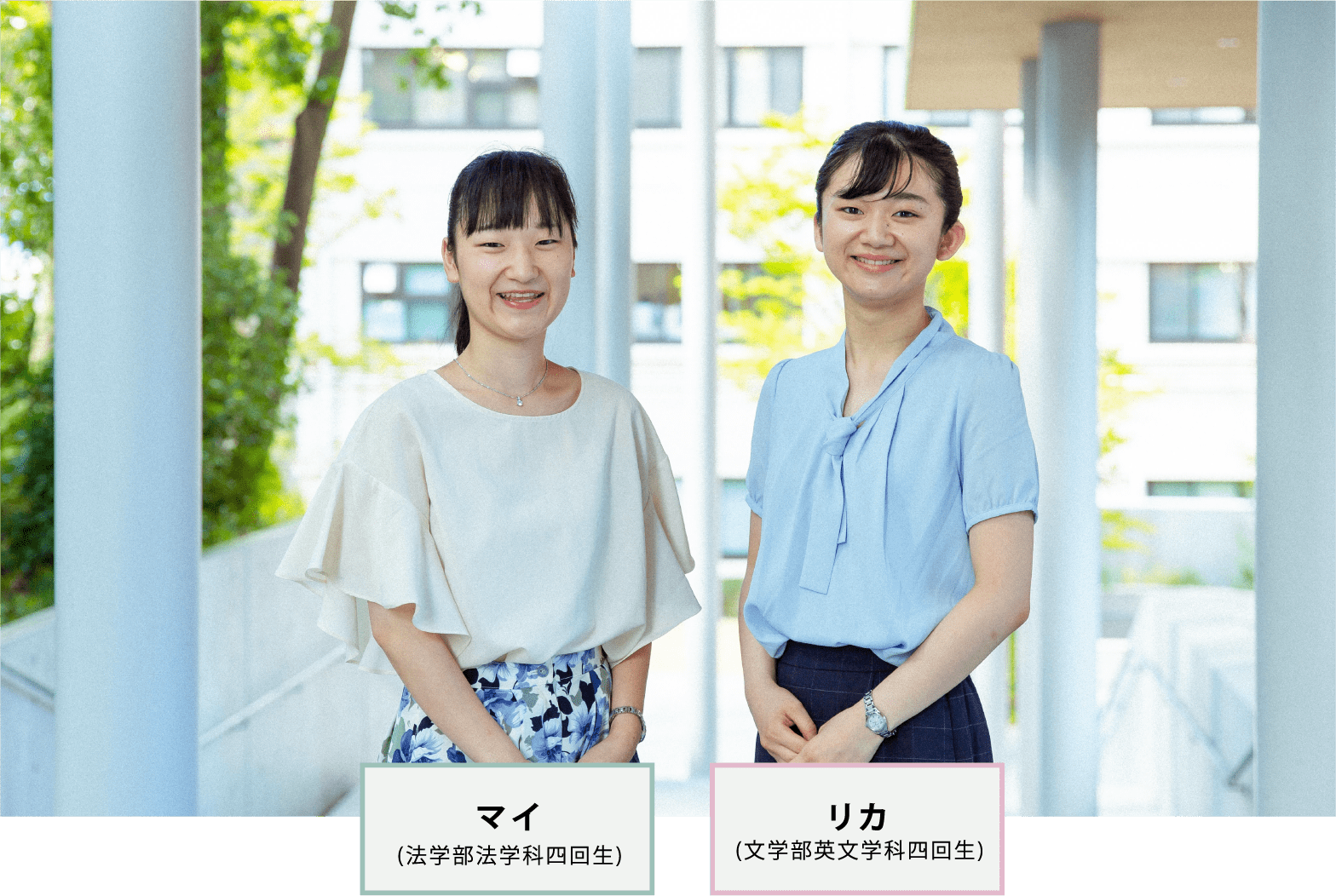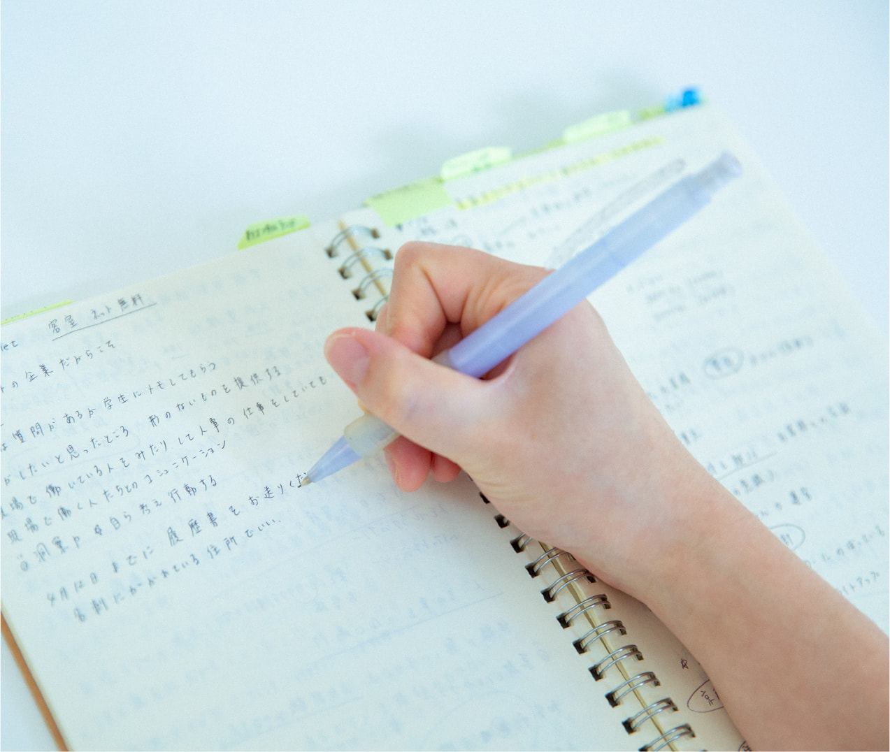 所属が文学部の英文学科ということもあり、周りは航空業界や観光業界にいく傾向が強いんですね。でもその中で、その固定観念を取り払うことが大切かなと思っていて。学んできた文学部の英語の知識を活かせるかどうかを考えるんじゃなくて、自分が何をしたいか、将来どういう自分になりたいのかを考えることが一番大切だと思います。私は、自分がどうなりたいかを箇条書きで書いてみたりだとか、こんなことしてみたいとかをまとめたりしていましたね。
