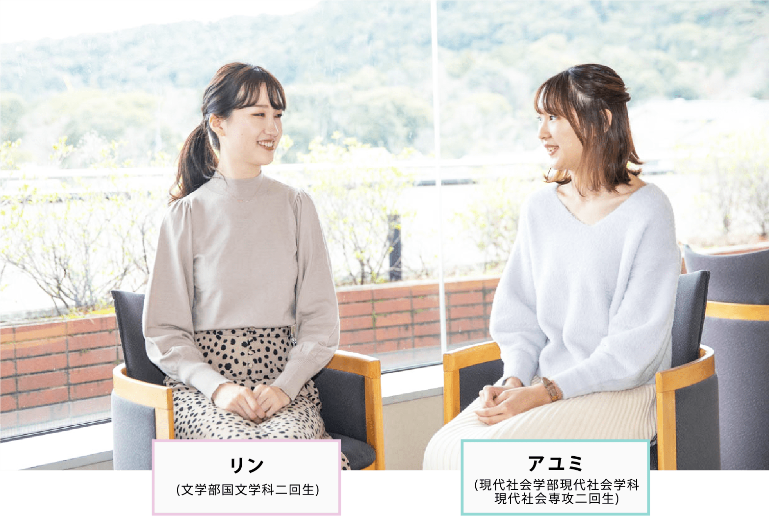 歴史好きには理想的な環境ですね。私は奥井先生のゼミ以降は、無知だった自分を恥ずかしく思い、毎日、新聞を読むようになりました。私自身、もっと学びたいと思えることに出会えて、それを探究できる環境が京女にはあるので、いま学びたいことがないという人も、きっと京女でなら見つかると思います。特に現代社会学科は、幅広い分野の中から興味のあることを選んで学んでいけるのでおすすめです。