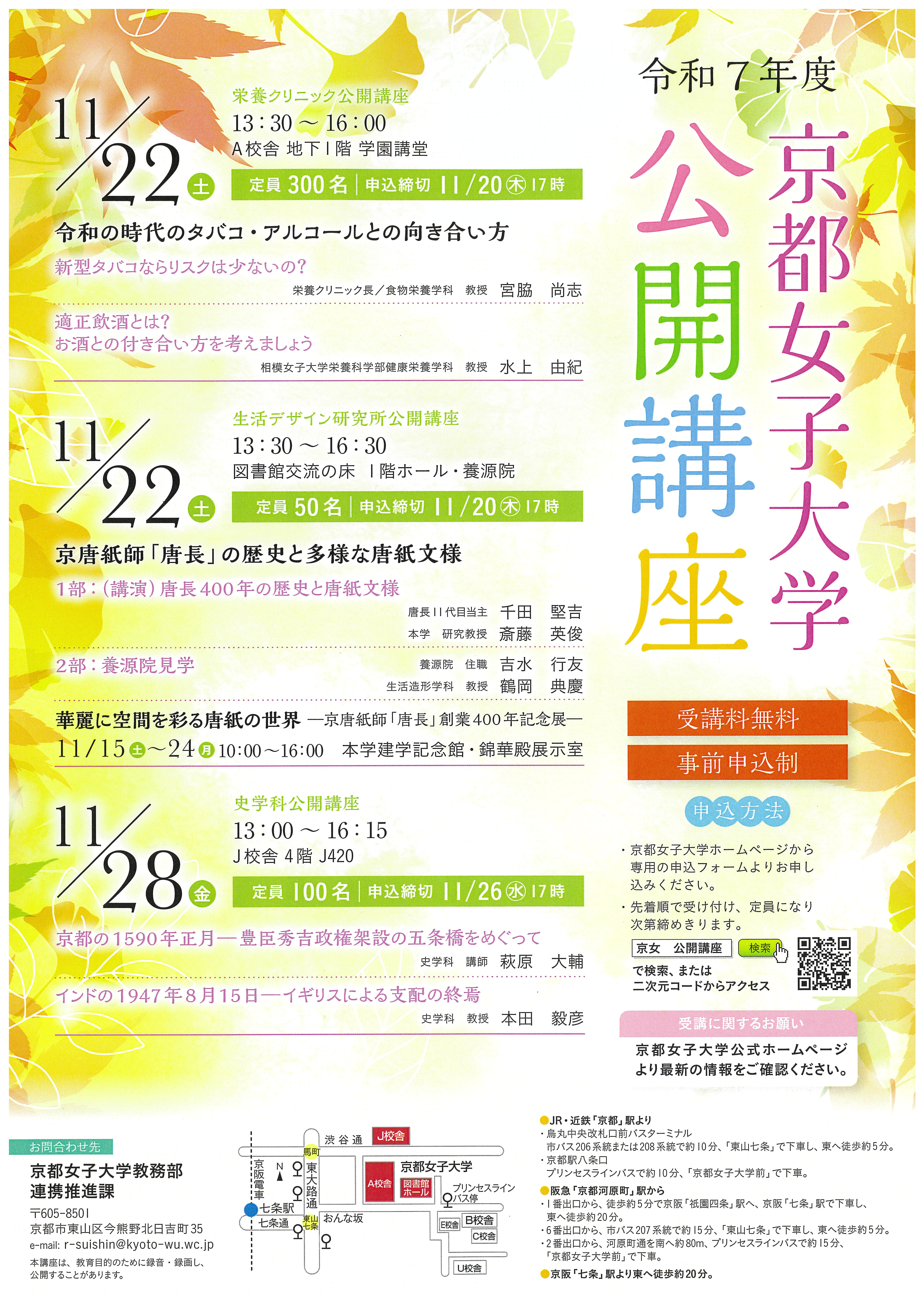 2025年度後期公開講座の申込受付を開始いたします。いずれも無料で、事前申込制です。